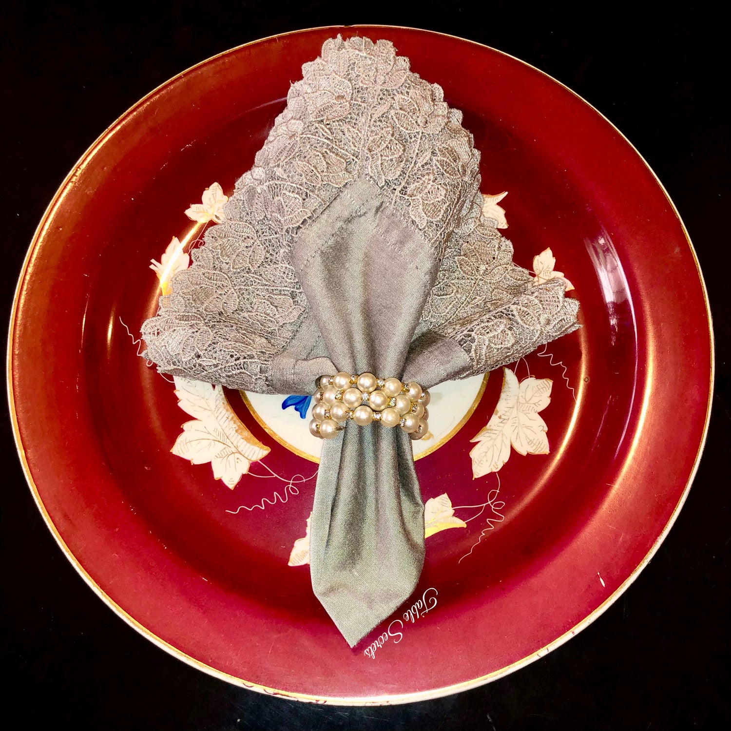 Grey Raw Silk Laced Napkin (Set)