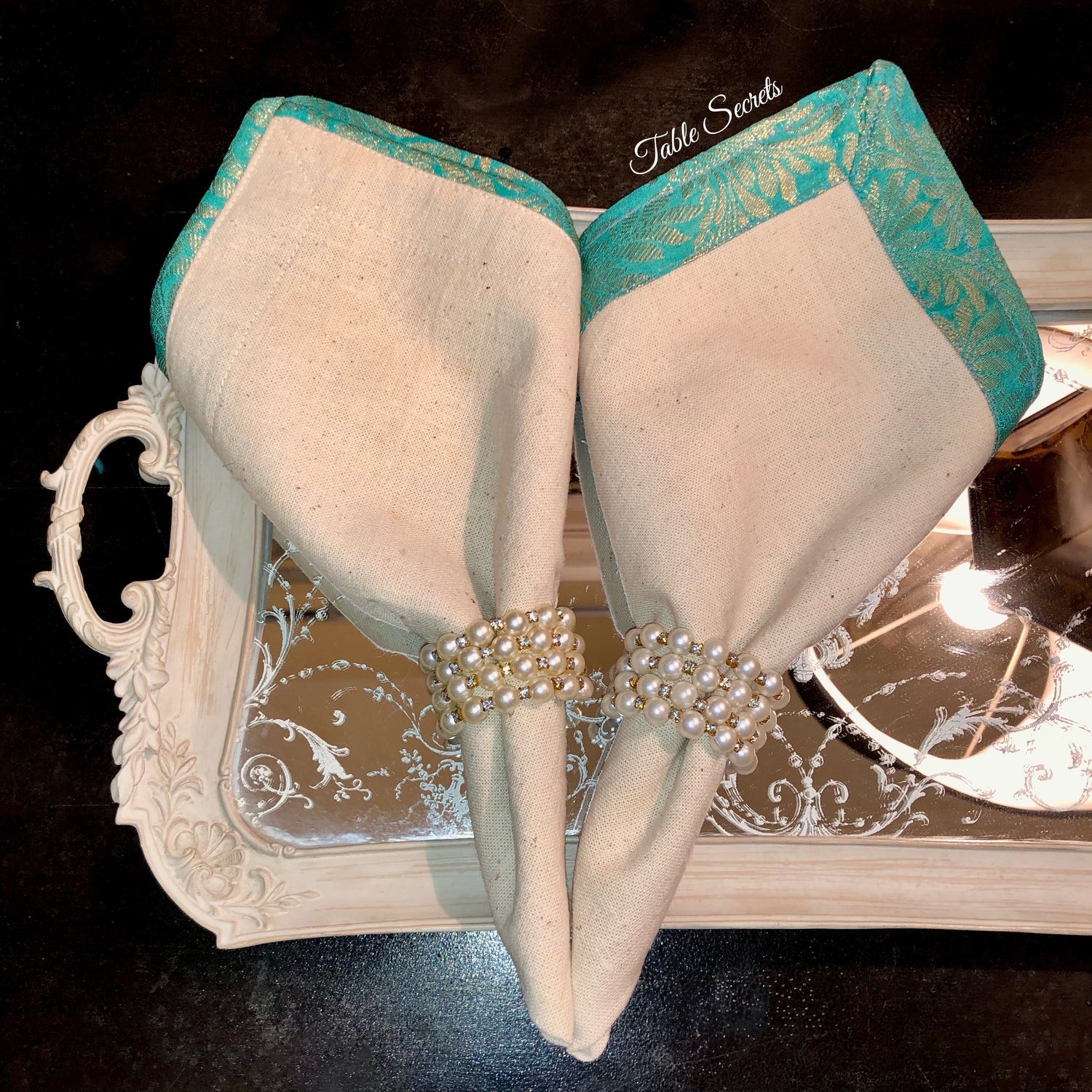 Turquoise & Off White Karandi & Jamawar Napkins (Set)