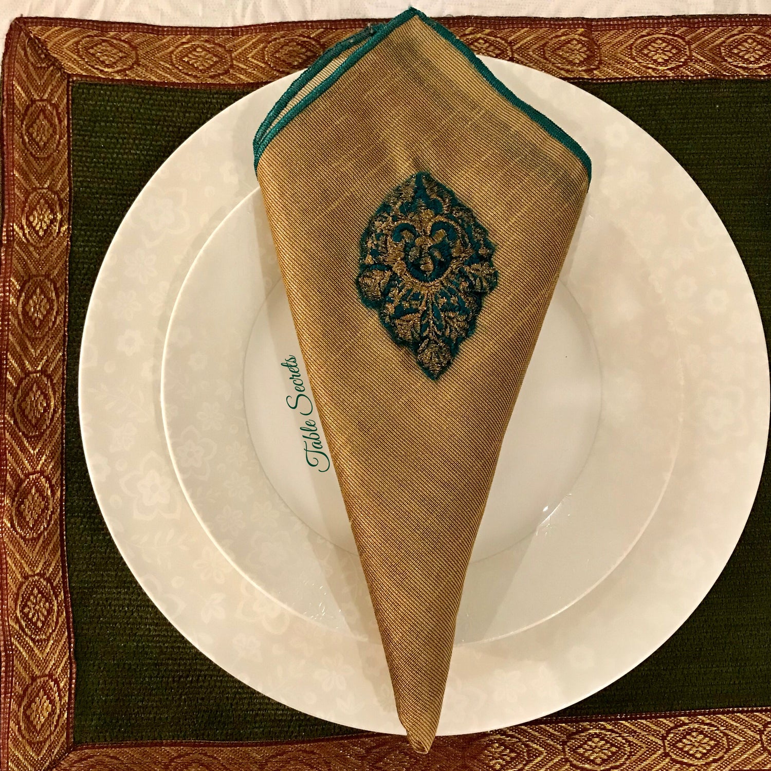 Velvet Appliquéd Green & Dull Gold Napkin (Set)
